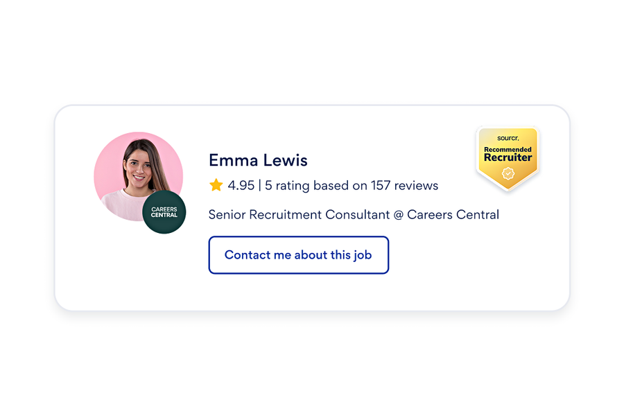 Your profile widget shows your photo, star rating and reviews, building immediate trust through your proven track record. Over half of candidates are more likely to apply for a job if the recruiter's reviews are provided.¹